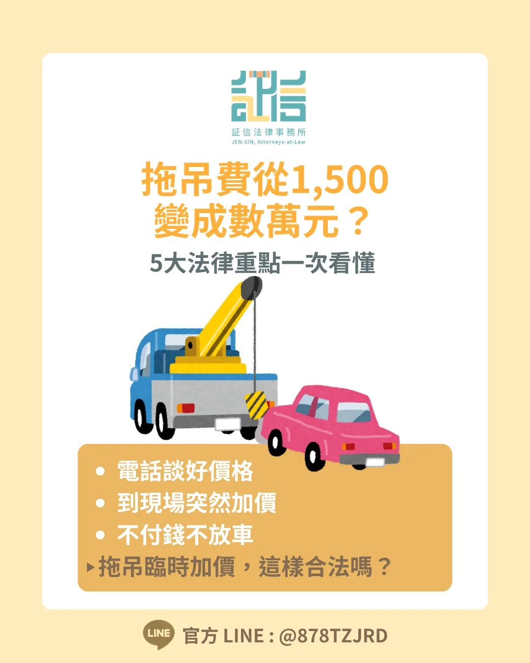 首頁 > 法律專欄 > 民法 > 【5大重點一次看懂】拖吊費從1,500變數萬元?拖吊臨時加價完整法律指南
