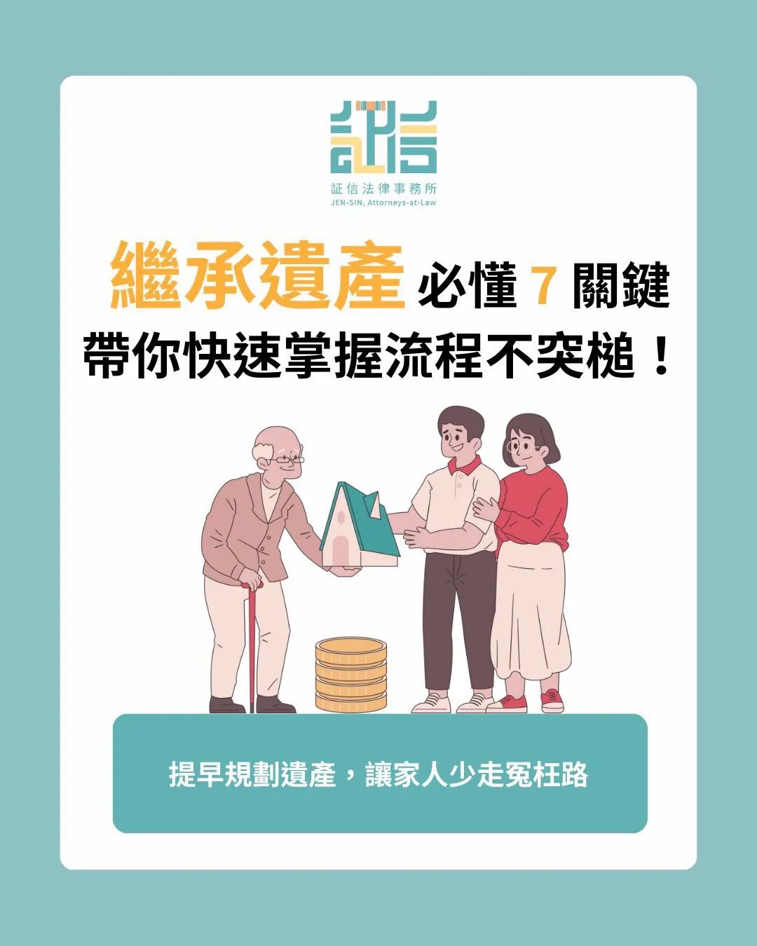 首頁 > 法律專欄 > 家事法 > 繼承遺產以下7步驟,教你順利遺產不突槌!