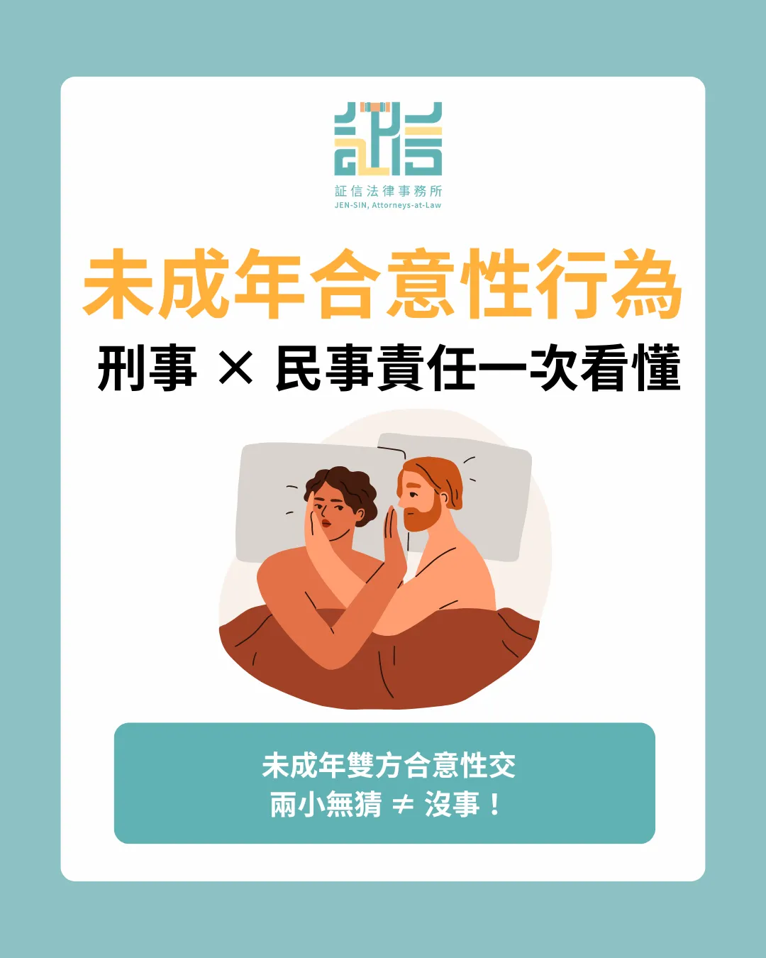 首頁 > 法律專欄 > 法律知識 > 未成年合意性行為 刑事 × 民事責任一次看懂 「兩小無猜」條款